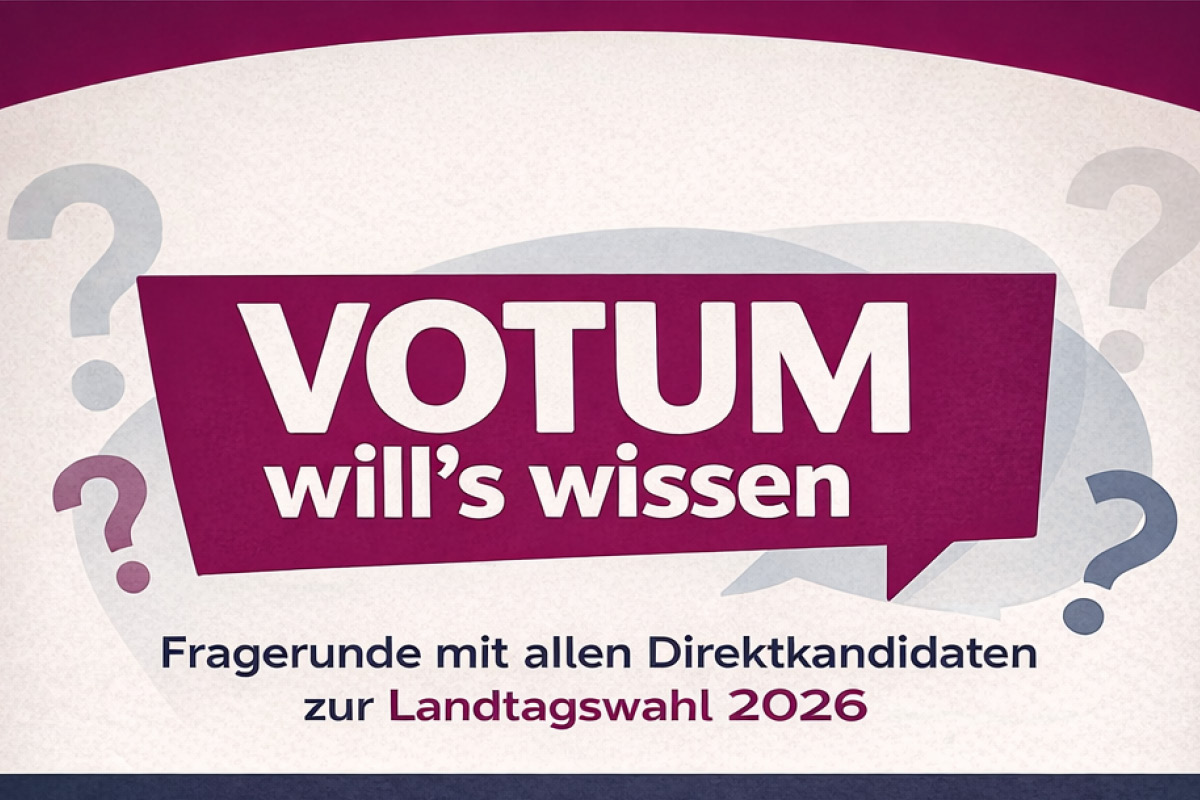 Am 5. März 2026 lädt VOTUM für den Kreis Kusel e. V. zu einer öffentlichen Fragerunde mit den Direktkandidaten des Wahlkreises Kusel zur Landtagswahl ein. Alle Direktkandidaten des Wahlkreises haben ihre Teilnahme zugesagt. Ziel der Veranstaltung ist es, den Bürgerinnen und Bürgern die Möglichkeit zu geben, die Kandidaten im direkten Vergleich kennenzulernen und sich auf dieser Grundlage eine eigene Meinung zu bilden.