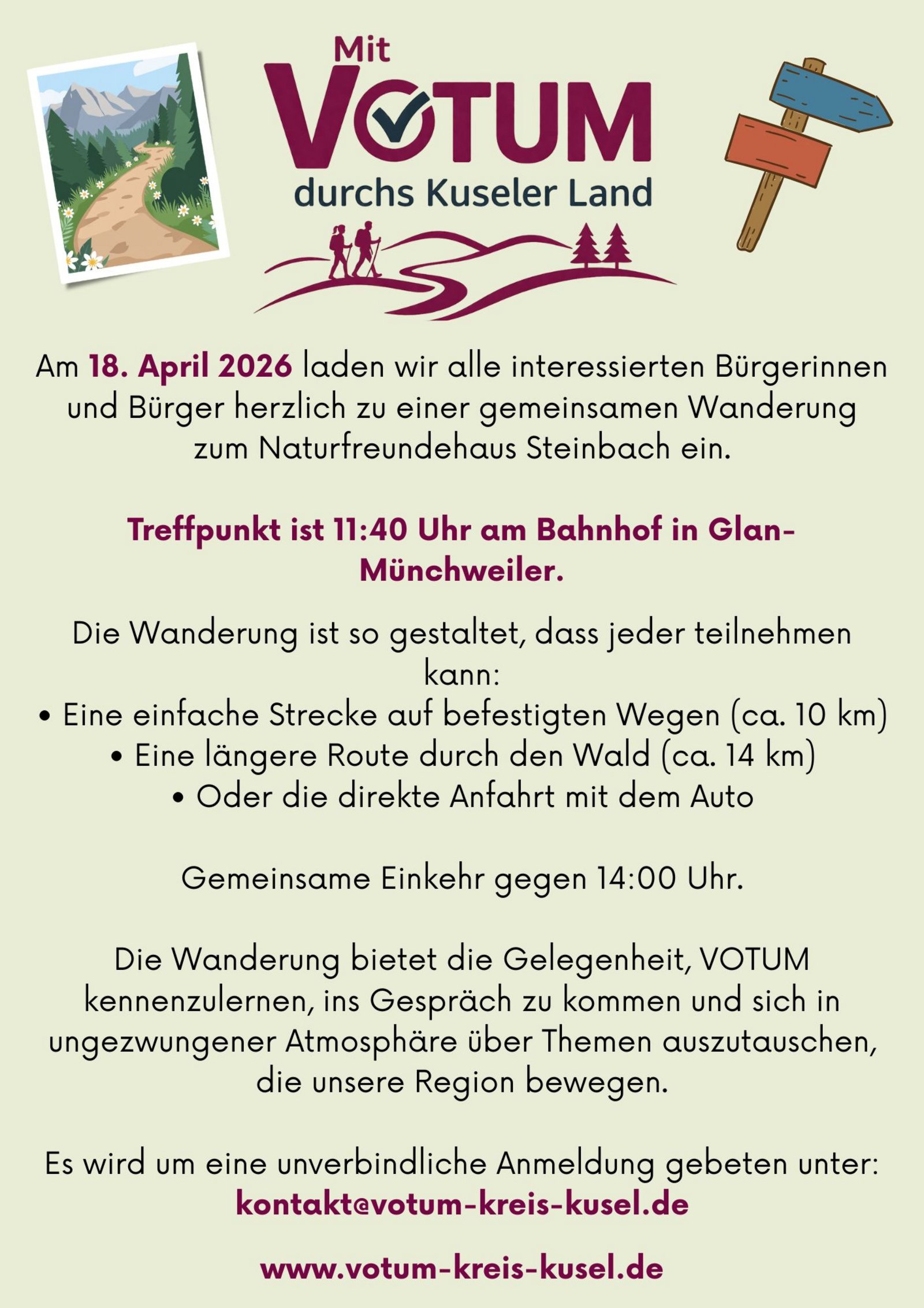 Es wird um eine unverbindliche Anmeldung gebeten unter: kontakt@votum-kreis-kusel.de